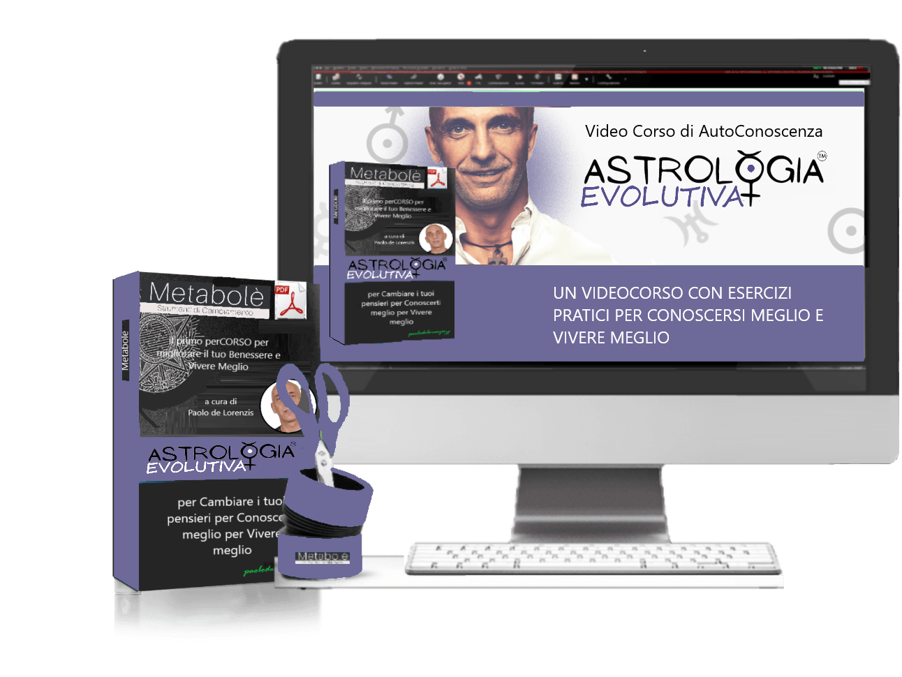 Il primo ed unico corso di autoconoscenza, grazie al quale, farai un bellissimo viaggio alla scoperta dei tuoi talenti nascosti, della tua mission, della tua vera natura, del tuo Karma, dei tuoi reali bisogni attraverso l'apprendimento professionale di un potente strumento millenario: l'Astrologia Evolutiva.
